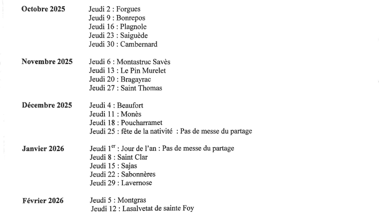 messe du partage pour cette année liturgique