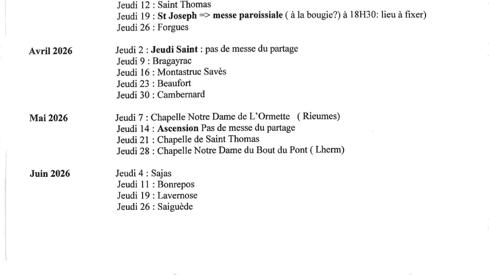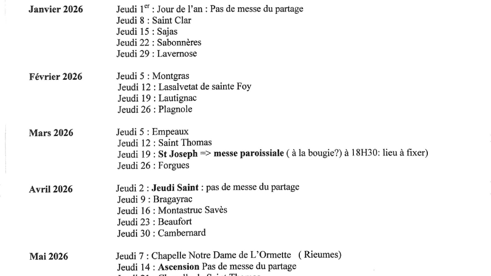 messe du Partage (jeudis)